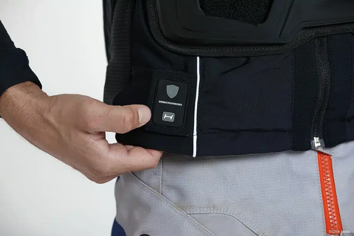 Sistema electrónico: tiene un botón remoto para encender y apagar, para controlar el consumo de la batería. ElChaleco Airbag electrónico OFF ROAD V2 tiene una autonomía de 25 h.