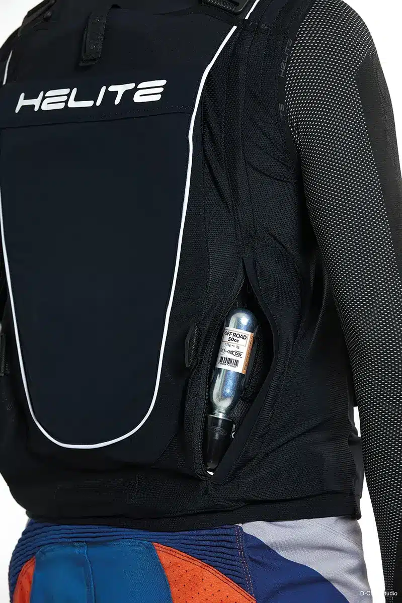 Reutilizable: como toda la gama de productos HELITE, Chaleco Airbag electrónico OFF ROAD V2 es reutilizable.Después del primer inflado, el cartucho izquierdo se activa. El chaleco se desinfla automáticamente y el sistema electrónico cambia de cartucho con un retraso de 3 minutos. El piloto entonces estará listo para partir nuevamente sin perdida de tiempo.