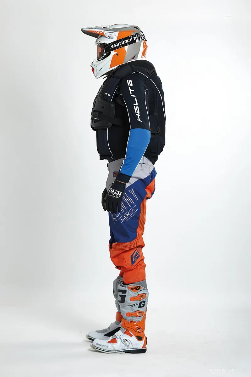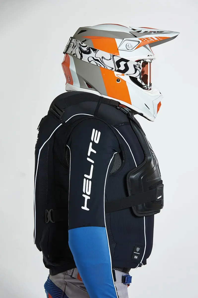 Protección áreas vitales.El Chaleco Airbag electrónico OFF ROAD V2 ofrece la experiencia de HELITE en la protección de áreas vitales: espalda, tórax cervical, abdomen, sacro, codos, hombros.