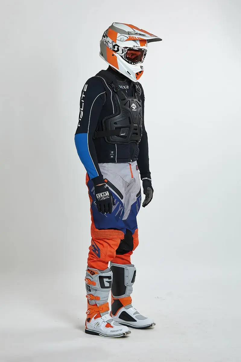 Diseño ergonómico: un tejido técnico y transpirable, ultra resistente y elástico que se adaptará perfectamente a la morfología de los pilotos, incluso cuando el airbag está activado. También se distingue por su peso optimizado.